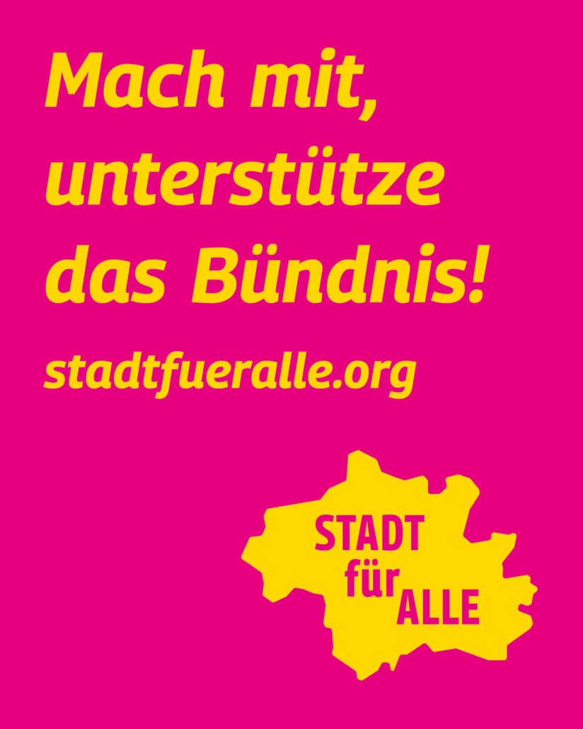 Hier stellen wir euch zentrale Materialien der Kampagne „Stadt für alle“ zur Verfügung.
