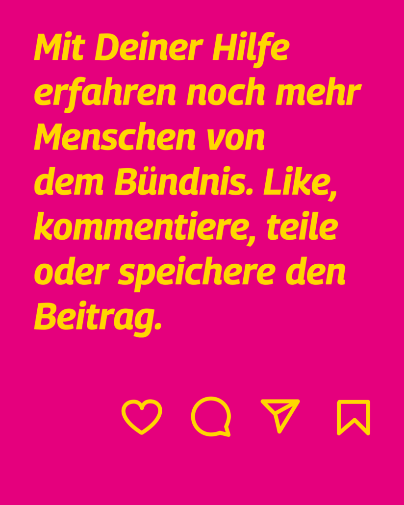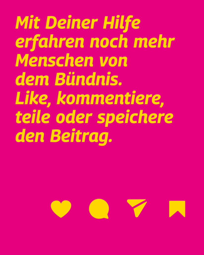 Die Inhalte sind für die gemeinsame Öffentlichkeitsarbeit, für Veranstaltungen, Social Media sowie für die interne Verwendung im Bündnis gedacht. Bitte nutzt sie gern und helft mit, unsere Forderungen sichtbar zu machen.